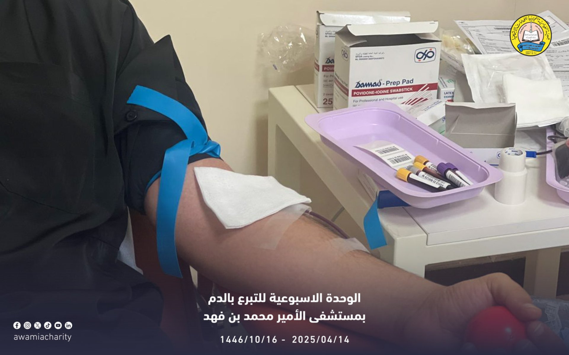 يُذكر أن وحدة التبرع بالدم بمستشفى الأمير محمد بن فهد العام تستقبل المتبرعين من الجنسين كل يوم اثنين، من الساعة 4:30 مساءً حتى الساعة 9:00 مساءً، بتنظيم من لجنة الفعاليات والأنشطة بجمعية العوامية الخيرية.
